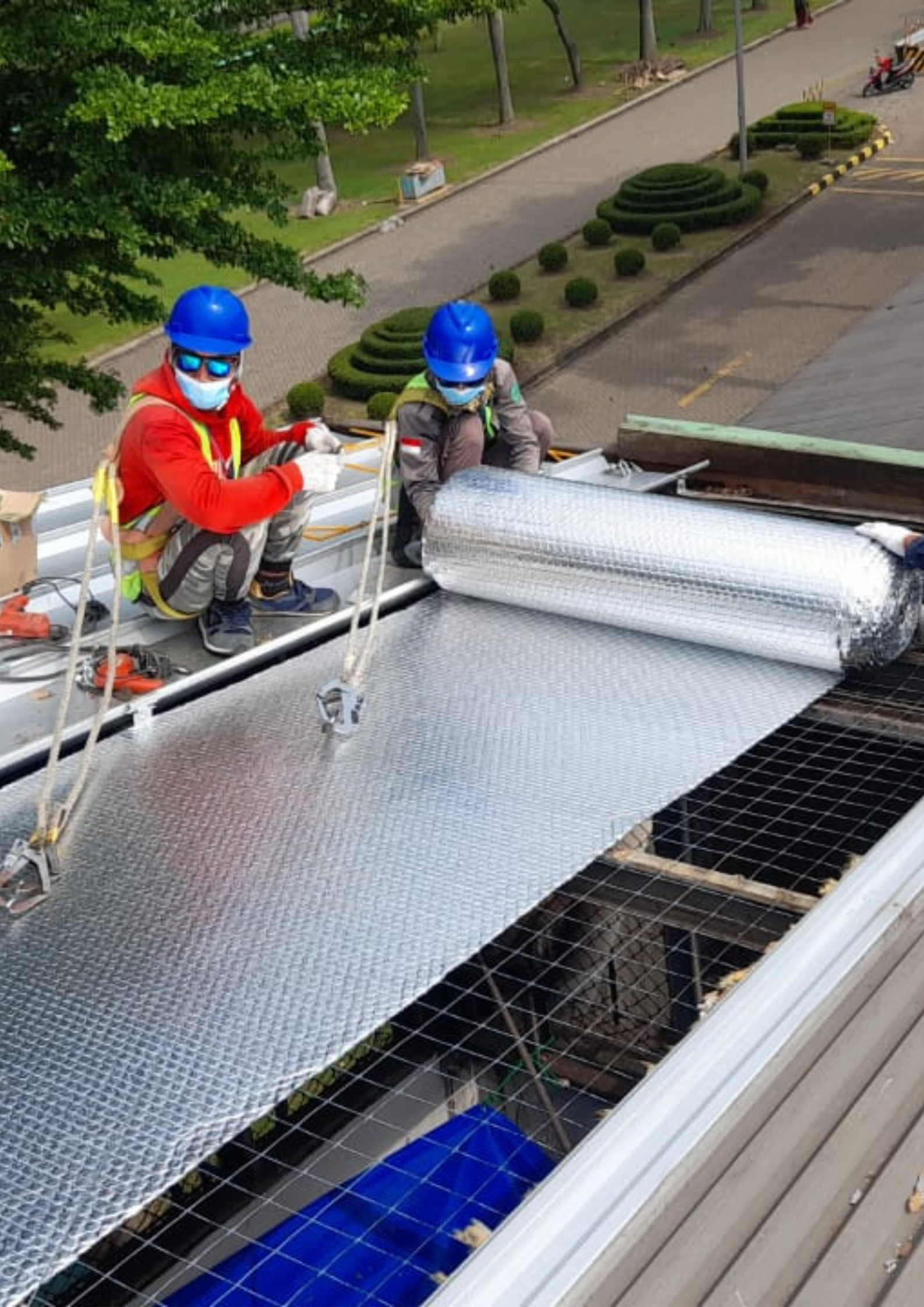 Supply kebutuhan : Material insulasi atap meliputi aluminium bubble foil dan roofmesh 3315.